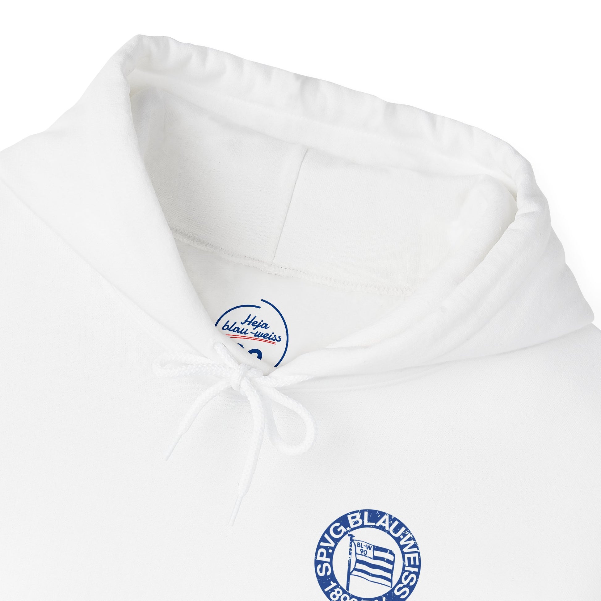 Dieser Hoodie verbindet klassischen Komfort mit tiefer Verbundenheit zur Geschichte von Blau-Weiss 90 Berlin. Auf der Vorderseite sitzt das Vereinsemblem im Used-/Vintage-Look auf der Herzseite – dezent getragen, aber unübersehbar in seiner Bedeutung.